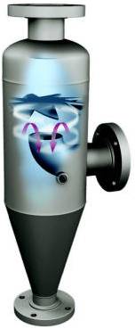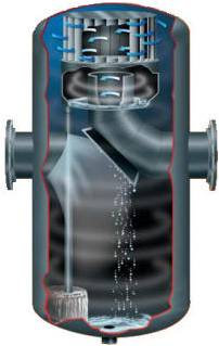 When properly sized, our separators will remove up to 99% of all liquid and solids greater than 10 microns in size from an air, gas or steam flow. The removal is accomplished by a design that causes the air/gas/steam to enter a controlled centrifugal flow. This results in forcing the entrained material to the outer wall and the VCP prevents re-entrainment. The removed particles and liquid accumulate at the bottom of the conical drain sump.