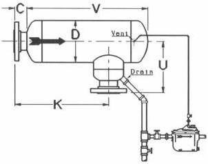 The typical float style drain trap is not recommended for this type of application, it is suggested that a rotary valve is used instead because its design inherently allows for the solids to be removed with minimal loss of air, gas or steam from the system.