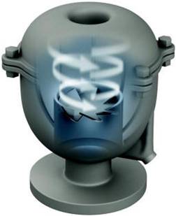 R style gas/liquid separators have a two stage process for separation. The initial stage the liquid enters the inlet and is deflected downward, losing velocity, resulting in a majority of the liquid to accumulate within the reservoir. The remaining moisture laden gas passes up through a vaned element where the remaining moisture is separated by centrifugal force, coalescing within the reservoir. The resulting dry, clean gas flows upwards and exits through the outlet of the separator. Wright Austin accomplished this without complex baffles, deflectors and other structures that obstruct the flow-stream and this results in very low pressure drops.