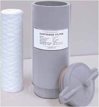 All Plastic PVC or CPVC Cartridge Filter Housings are used to remove fine particles from process fluid. These housings are designed to use single, open ended cartridges 10", 20" or 30" in length. Cartridges must have a 1" ID and these housings do not accommodate stackable cartridges. Viton Seal is standard.